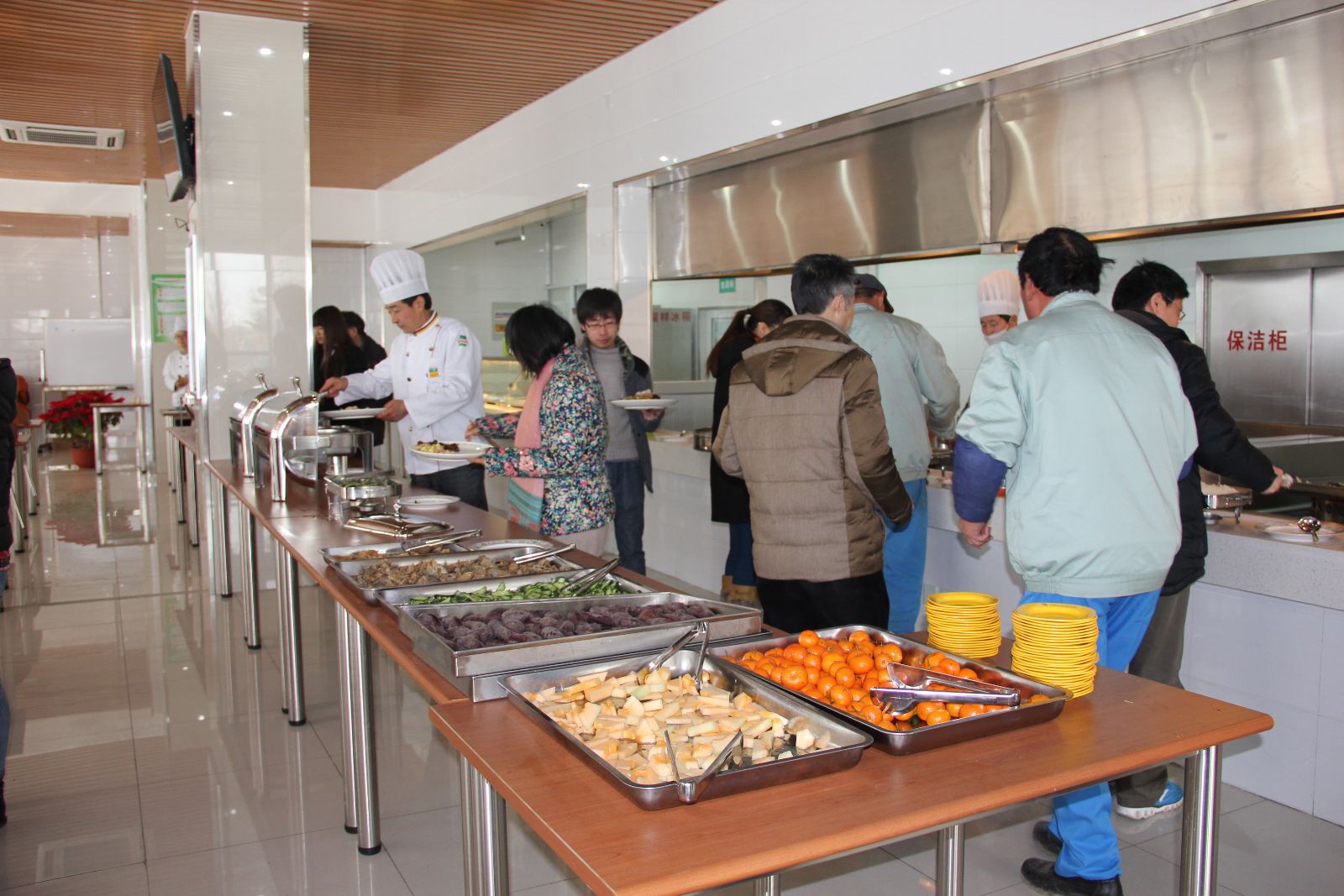 实训基地食堂自去年9月运行以来,不管从菜式供应还是服务水平都有了质的提升,得到了用餐人员的好评。2015年1月16日中午,在学院领导和各部门支持与配合下,实训基地食堂又试行周五中餐自助服务。
