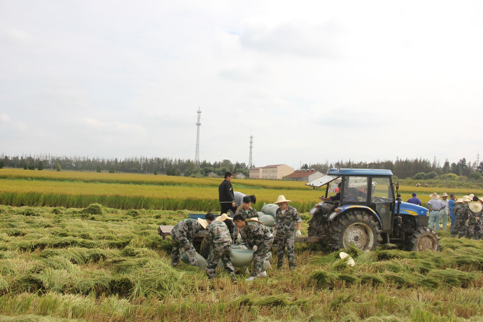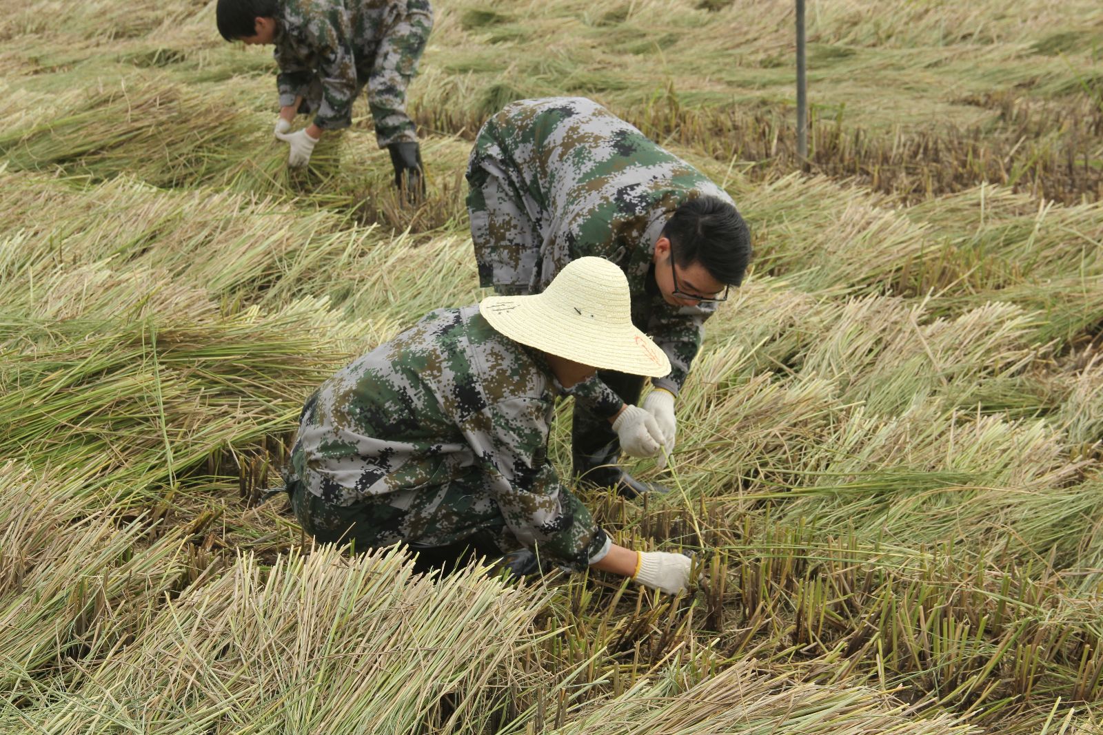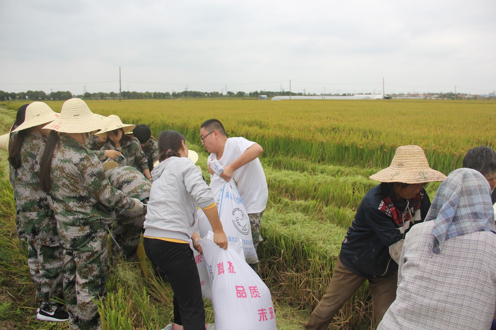 而其余两个班――网络151班和物联网151班全体同学和基地师傅会同勤工俭学的学生们于周二、周三两天,在杨老师的指导下,完成了98亩稻田的抢收任务,共收稻谷65吨。在收割机收割水稻的过程中,女生们将遗漏的在田间地头的水稻拾起,真正体会到什么叫做“粒粒皆辛苦”。在水稻装车的过程中,男同学们有的爬上货车协助师傅们在车上进行整理,有的两两配对,将一袋袋的水稻搬运到叉车板上。每位同学都很辛苦,但仍坚持将所有收割好的水稻装车后才停下休息。值得一提的是,两个班的男生们都充分发挥了他们的绅士风度,脏活累活都抢着干,在老师、工人师傅与女生中留下了良好的印象。