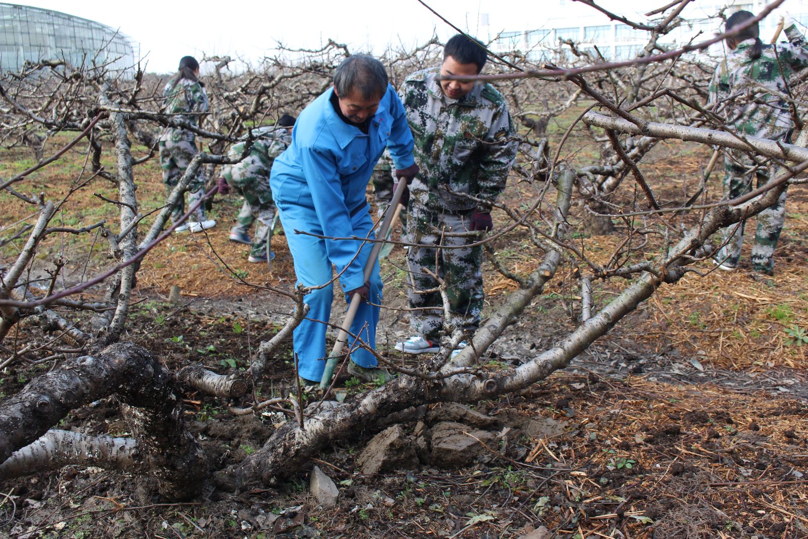随后,在杨老师的引领下,同学们到达此次的实训地点—桃树地。在工人师傅的教授和老师的指导下,同学们展开了翻土工作。刚开始,同学们对于翻地来说,略显生疏,无从下脚,不知道怎么翻地,经过工人师傅的一一辅导,老师的亲身示范,同学们一点点感悟,慢慢的摸索,很快都找到了适合自己的方法。他们的地翻的越来越好,速度也快了起来。期间,同学们翻的热火朝天,以至于都忘记了休息。值得表扬的是我们班的男同学,在本组任务完成后,还积极的帮助其他小组的同学。没有一个同学放弃,大家齐心协力,共同作业。