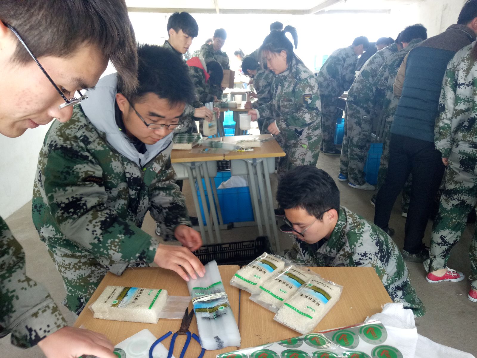 2016级新生学农与双创实践活动在五厍实训基地拉开序幕,3月7日下午,环境161班34名学生参加农事实践课程—包装大米。
