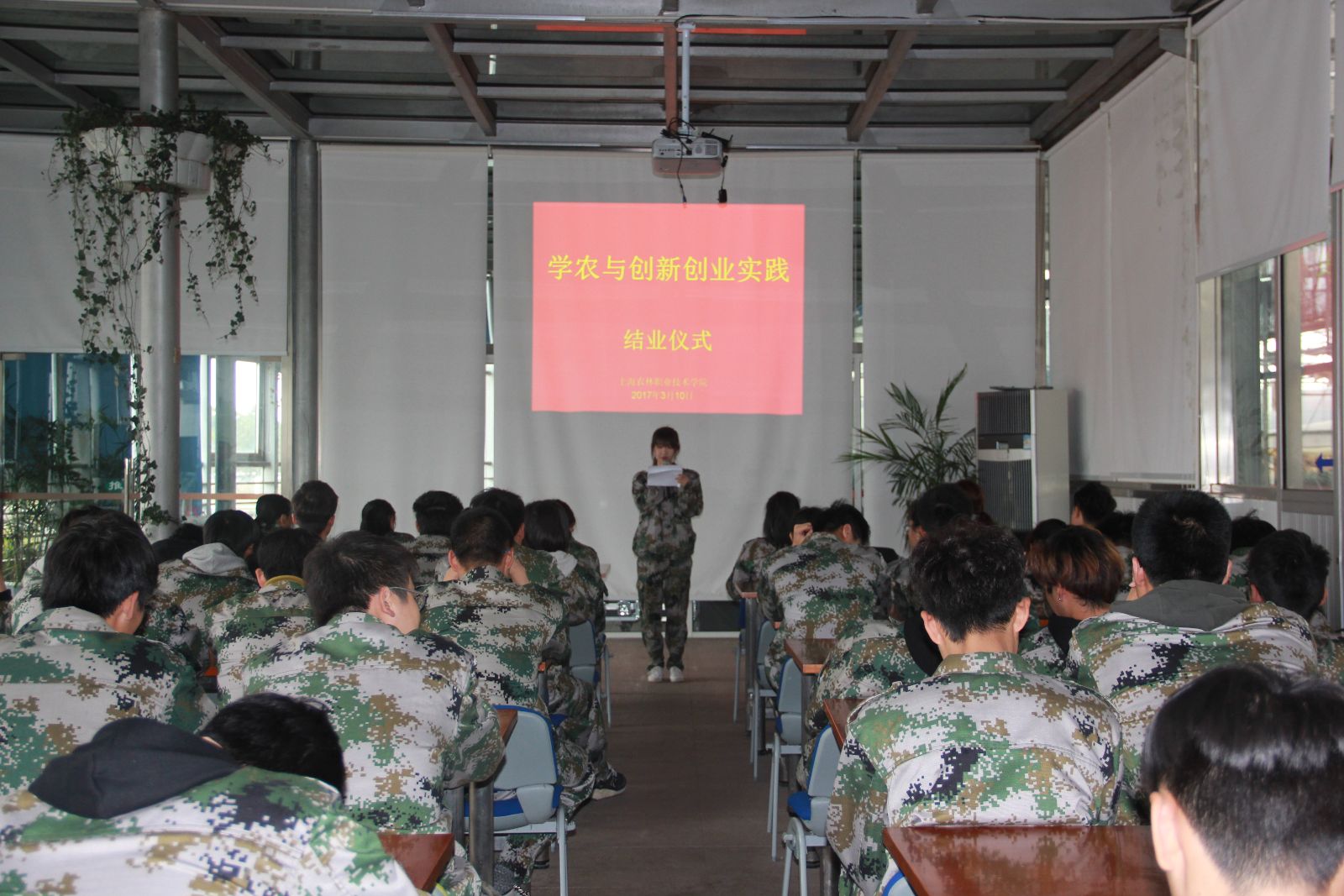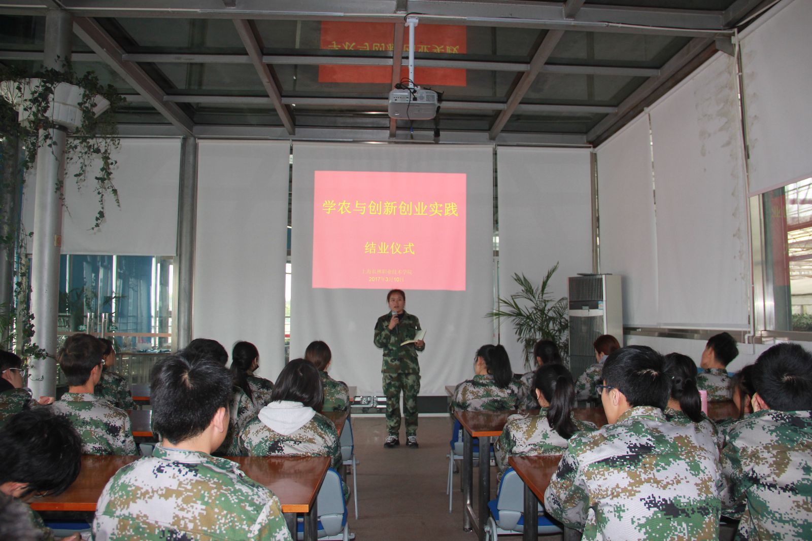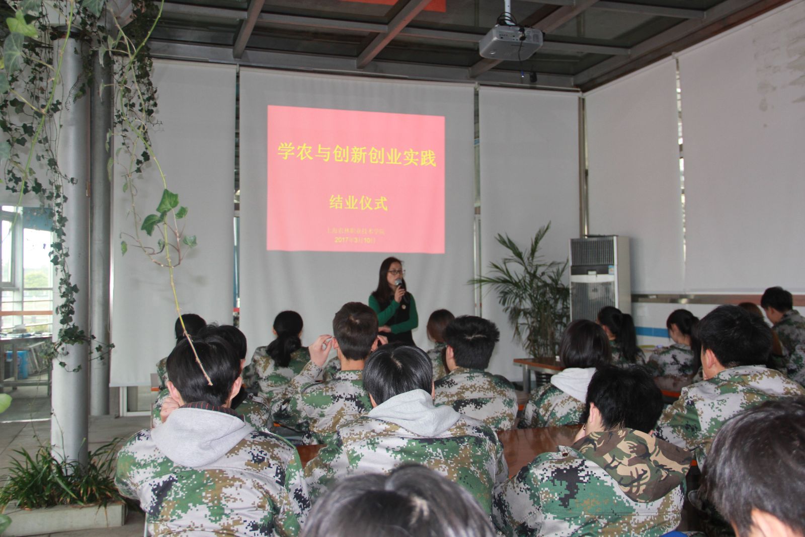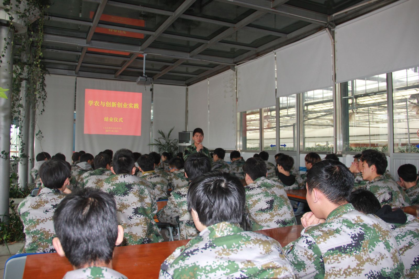 3月10日下午,我校2016级环境班学农与双创实践班级结业仪式在五厍实训基地生态温室举行。