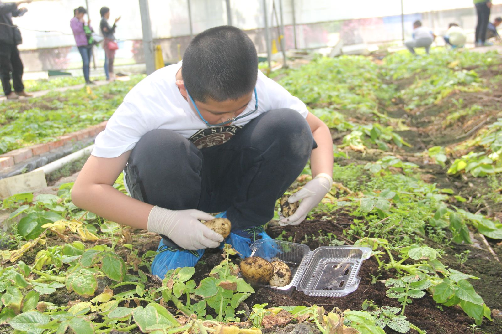 此次活动分四个体验项目,分别为现代“小农夫”、园艺diy、草坪“理发师”、稻谷变“大米”。与以往活动略有不同,利用午休时间增加“小农夫”体验园。体验内容是让小朋友们亲自去田间地头挖土豆,近距离了解土豆生长环境、状态和习性。挖好土豆之后,学生们又体验了一把土豆泥制作过程,品尝到自己亲自做的土豆泥,鲜得眉毛都要掉下来了,满满的成就感,有几个小朋友端着自己的成果迫不及待的与家长分享。