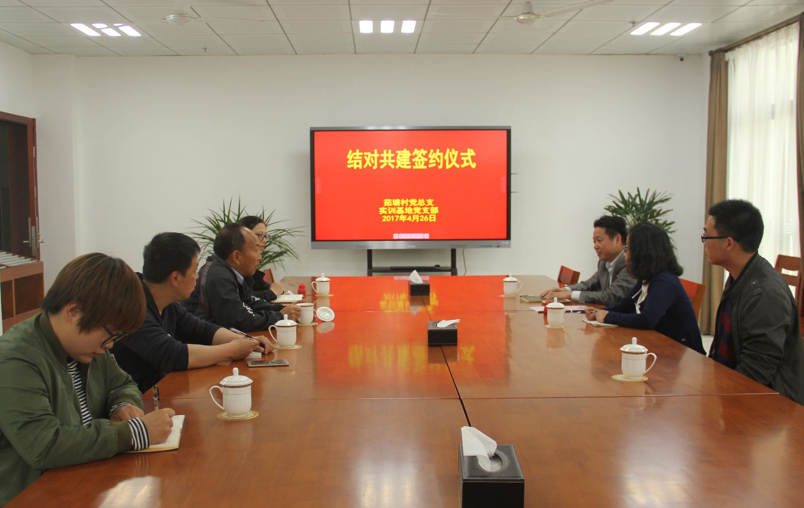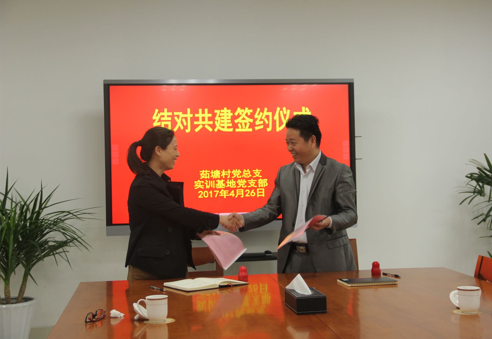 为深入开展“两学一做”学习教育,充分发挥党支部的战斗堡垒作用和党员的先锋模范作用,进一步开展实训基地党支部“立足泖港、放眼浦南、服务当地”主题活动, 4月26日下午,学院实训基地党支部与泖港镇茹塘村党总支签订结对共建协议。双方将遵循“资源共享、优势互补”的原则,充分发挥各自优势,发挥职能作用,动员和组织各方力量,以服务群众为中心,努力构建区域化党建工作新格局。