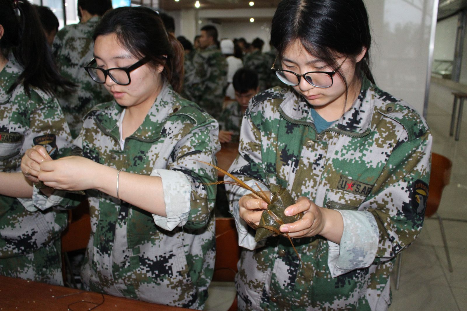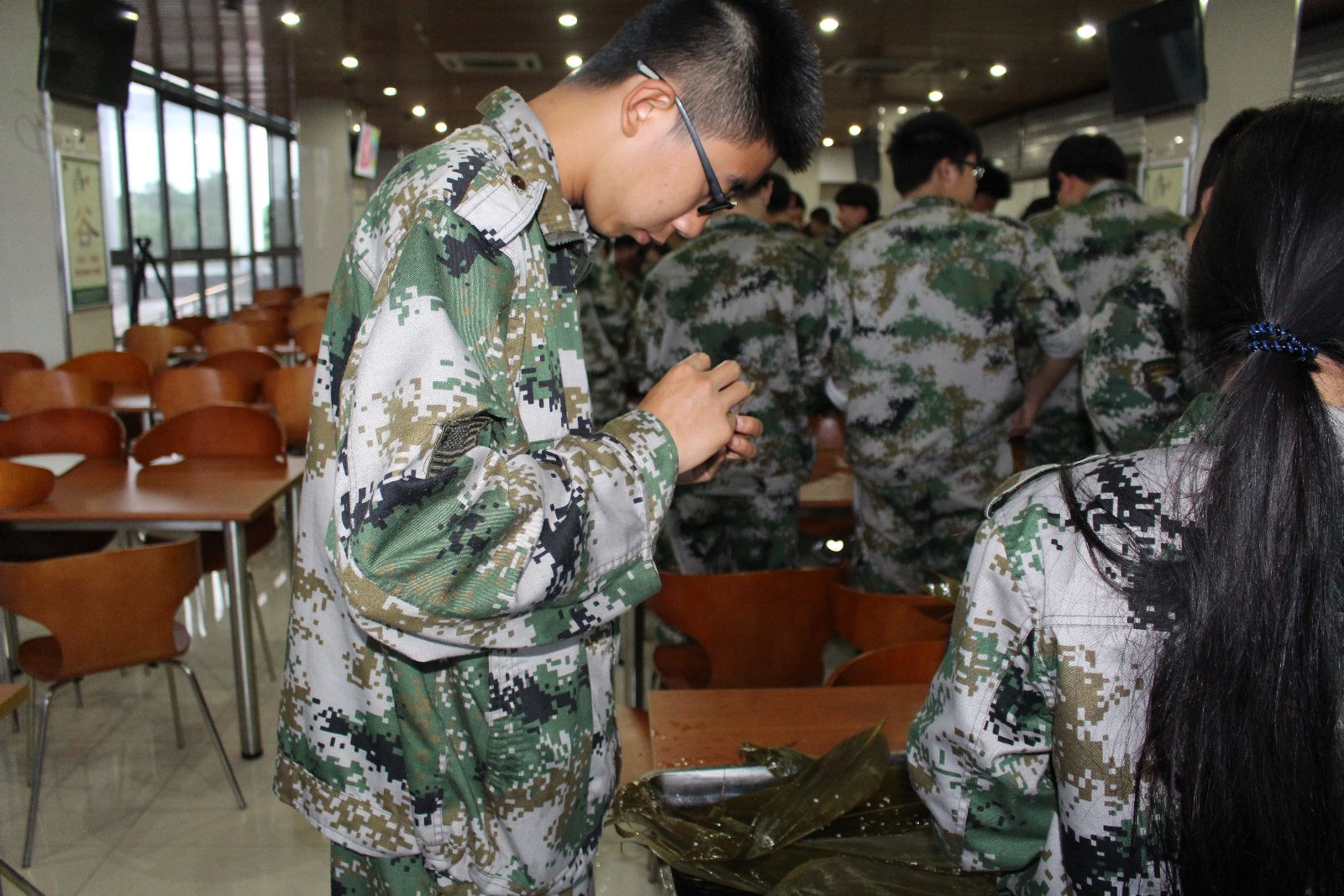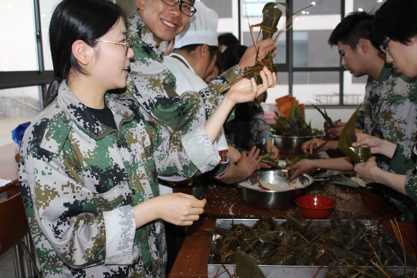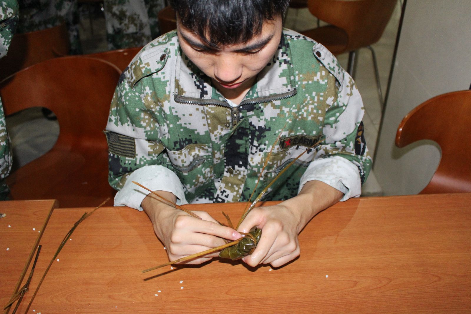 同学们手忙脚乱的折腾了好一会,终于到了最后一步,也是最关键最重要的一步--扎粽绳。食堂阿姨告诉同学们,粽子要包扎的严实才好吃。拿好粽绳,同学们将粽子五花大绑的缠了一圈又一圈。偶尔也会看见有些同学因为担心粽子扎得不紧而用牙齿咬绳子拉紧粽绳的。一位同学说:“我喜欢吃粽子,也看过别人包粽子,可是自己却从未动手包过。今天,自己亲自动手学包粽子,而且还是和我们班所有人一起,这样的经历好难得”。