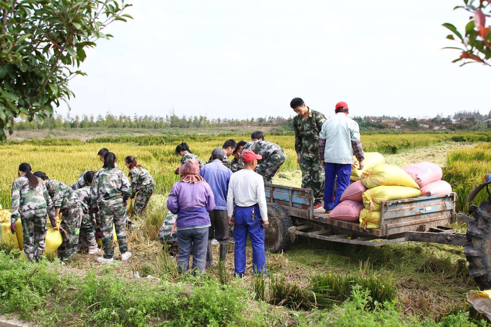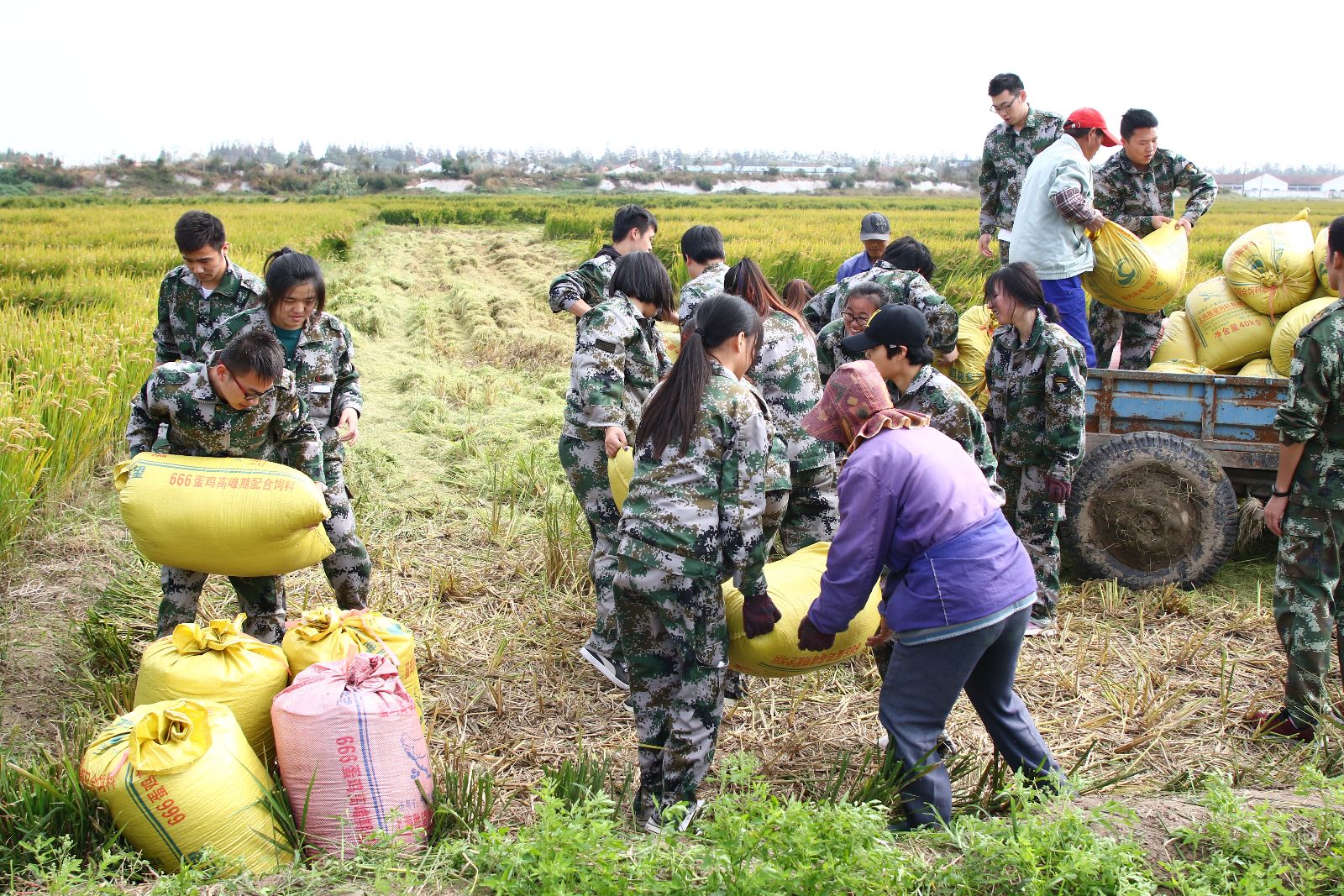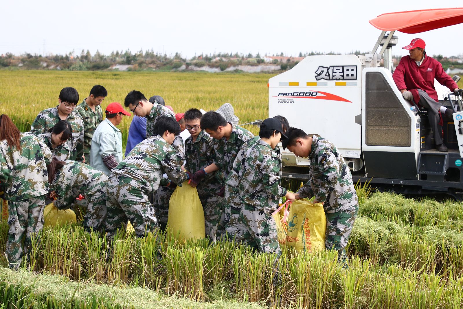 上午8点,同学们在整理好寝室内务后统一坐大巴车前往海湾基地,开始了一天的课程实践;到达海湾基地以后,同学们被有序的分成两组,一组同学到田地里协助水稻收割,另一组同学到仓库进行稻谷装车工作。