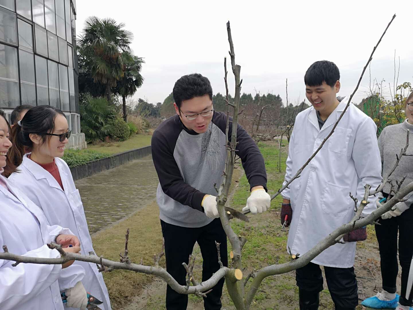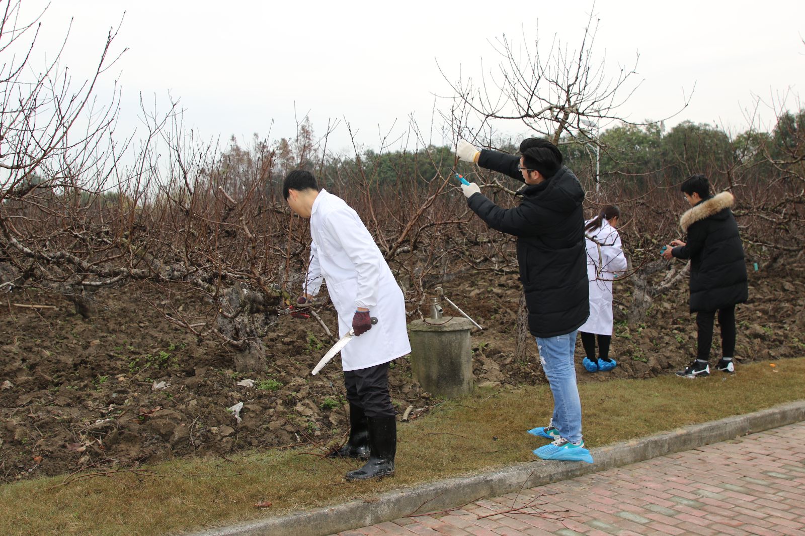 冬季来临,各类果树逐渐进入生长休眠期。为帮助果树储藏养分,更好地进行光合作用,促使花芽生长、提升品质。实训基地于12月初起对五厍基地种植的桃树、梨树进行修剪,历史一个多月,于1月14日全部完成。