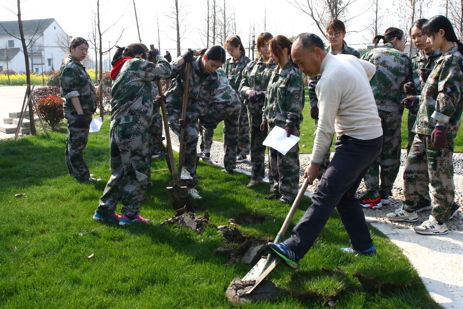 从早期的植物设计,到今日的实地施工种植,我校师生参与其中。大家将学习理论知识和实践相结合,热情满满,以分组形式井然有序的根据设计图定点放线、挖土、种植。