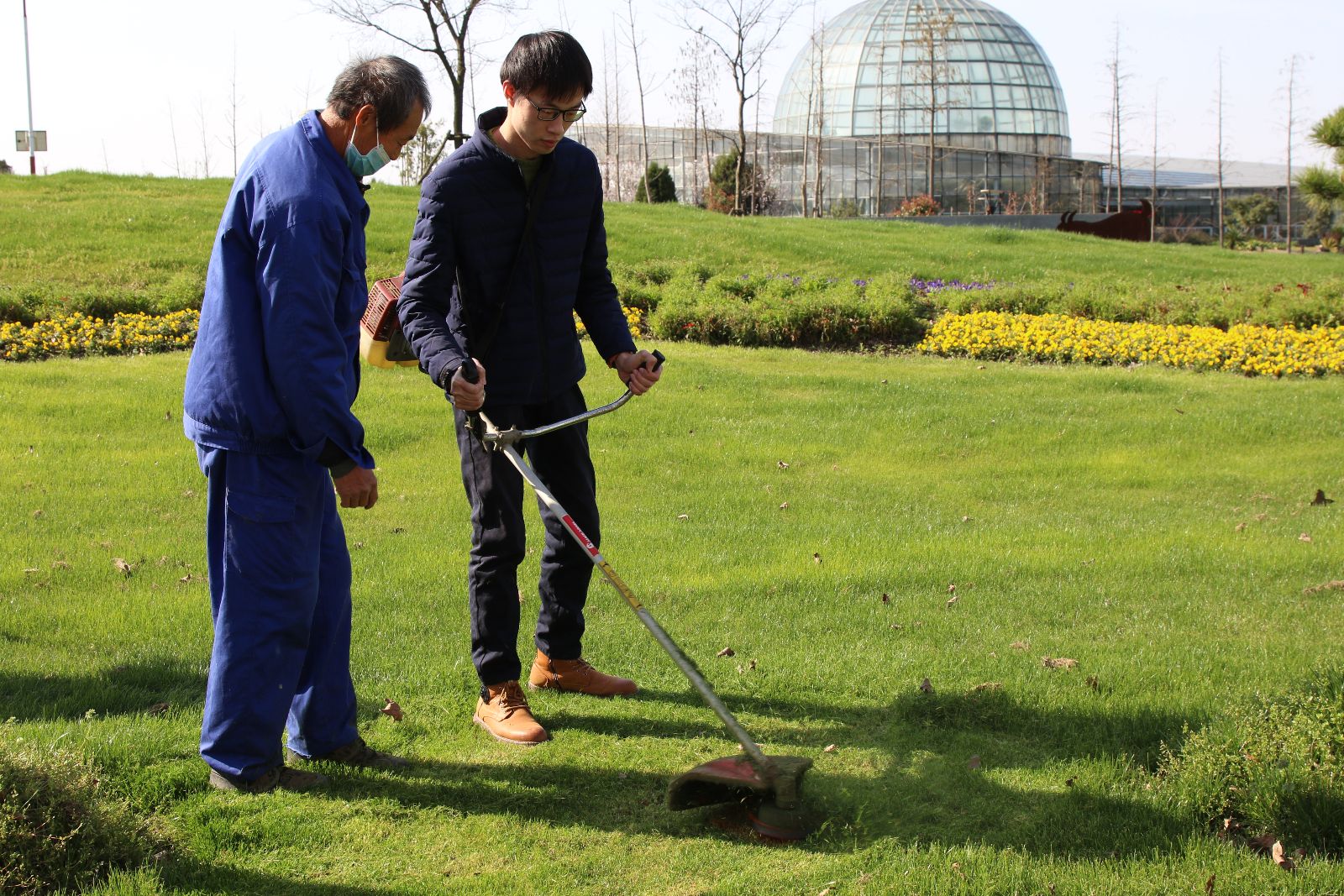 冬去春来,万物复苏。随着气温回升,原本繁忙紧凑的春耕工作受疫情影响有所停滞。为了保障后续的教育教学,实训基地组织教职工共同参与到一线工作中,开展智能温室植物养护、灌木及草坪修剪和动物实训犬舍整洁工作,为学院复工复产做好前期准备工作。