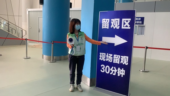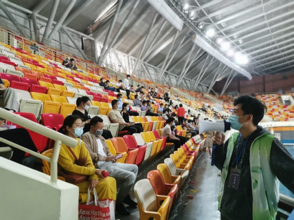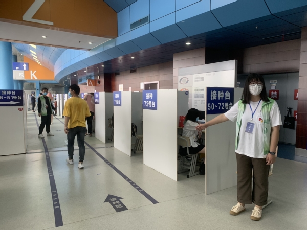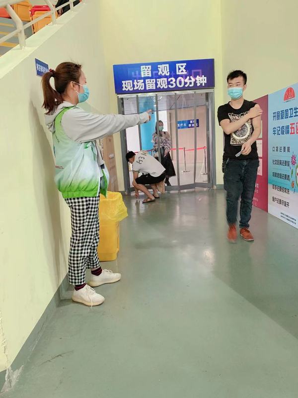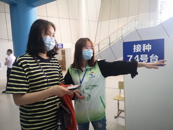 无论刮风下雨还是烈日当头,志愿者们都坚持在区体育中心各岗位维持秩序,耐心解答问题,引导市民顺利入场接种疫苗。在30分钟留观区,志愿者们提醒已接种市民带好口罩、隔座留观,并为大家讲解接种后的注意事项,整个服务过程井然有序。