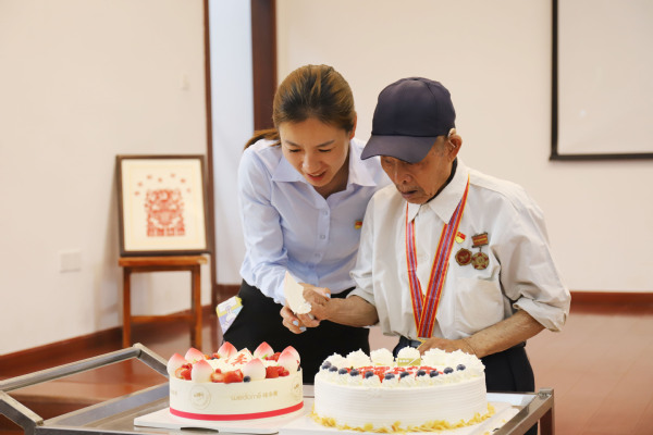 最后,全体党员和中国人民志愿军老兵俞根生家属为俞根生同志庆祝了100岁生日。