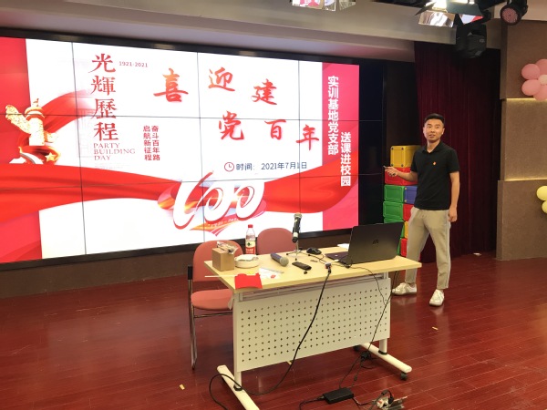 今年是中国共产党成立一百周年,在这特殊的时期里,学院实训基地党支部党员代表于7月1日前往长宁区愚园路第一小学开展送课进校园活动,百余名长宁区愚园路第一小学的教师参加此次活动。