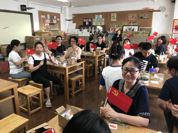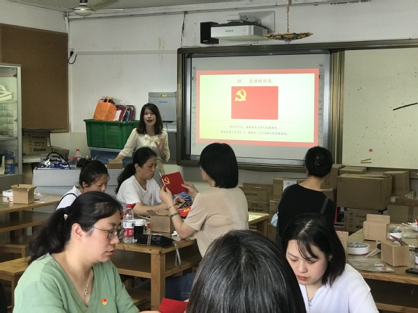本次送课进校园活动设有“微党课”、“制作党旗”和“DIY多肉种植”等环节。此次微党课以《党旗的由来》为主题,分别从党旗的发展背景,党旗的由来以及中国共产党党旗党徽制作和使用的若干规定,进行授课。通过制作党旗让老师们更加深入了解党旗的由来以及党旗的发展历程。