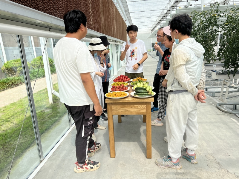 随后,老师们在“半封闭植物工厂”内针对如何促进园艺作物绿色、高产、优质栽培等相关技术和智慧农业发展趋势进行了交流讨论,并提出宝贵建议。接着,大家对“植物工厂”内‘航樱’、‘航瓜’系列共计7个品种的航天育种实验材料的果实进行了品鉴。