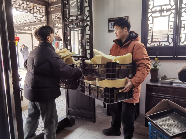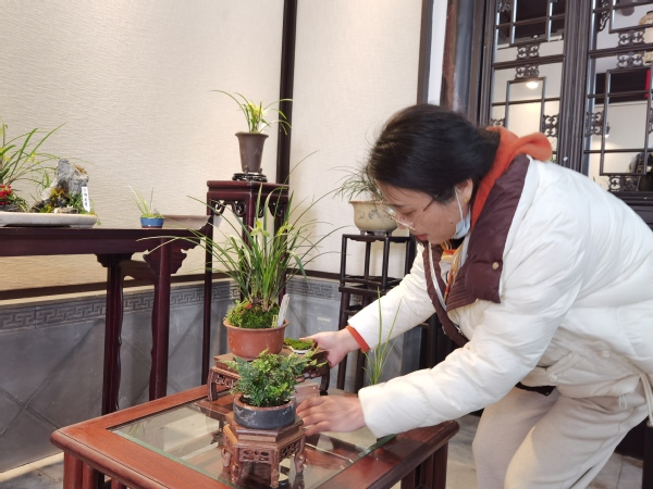 首届主题为“百春方半,九畹初馨”的“上海春兰展”即将举办,2024年3月2日基地工作人员在上海醉白池公园进行紧张的布展工作。