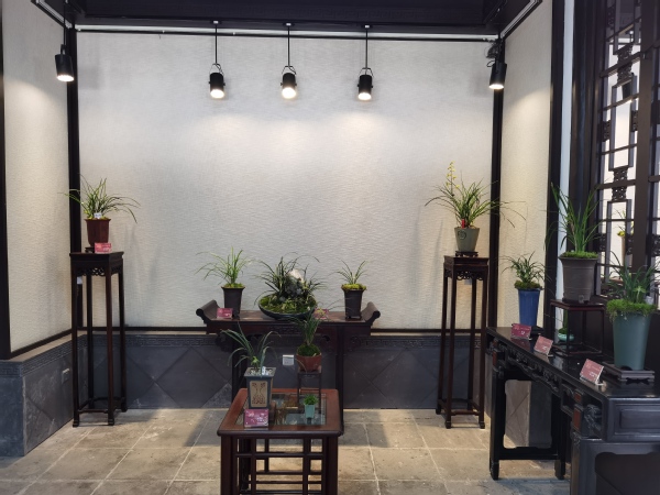 本会场将同步展出以春兰为主题的山水盆景与春兰单品50余个品种、80余盆次,除了春兰四大天王‘宋梅’、‘龙字’、‘万字’、‘集圆’外,还有‘汪字’、‘小打梅’、‘贺神梅’、‘桂圆梅’等其他传统品种,超凡脱俗的兰花搭配精致花架、案几、高钵低盆,在素雅背景和暖色灯光的映衬下尽显高洁气质、着重突出深厚人文底蕴的同时又不失现代生活气息。同时我院联合上海植物园利用花期调控技术使兰蕙齐聚一堂,将4月盛开的蕙兰如‘老上海’、‘解佩’、‘绿牡丹’、‘大一品’、以及两个蕙兰新品种提早了近50余天开放。本届兰展时间为2024年3月3日至3月10日,展览区域为上海醉白池公园内的碑刻画廊展厅,欢迎各位师生前往观展。