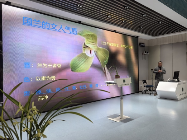 2024年10月22日上午10点,实训基地邀请了长三角兰界资深大师,杭州兰协副会长王益先生为我院植物科学技术系园艺技术专业80多位师生开展了一场以“浅谈国兰”为主题的讲座。王会长早年毕业于北京外国语大学翻译专业,长期从事对外贸易与国际交流工作,从小痴迷中国传统文化,尤其是对中国兰花研学颇深。