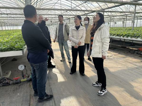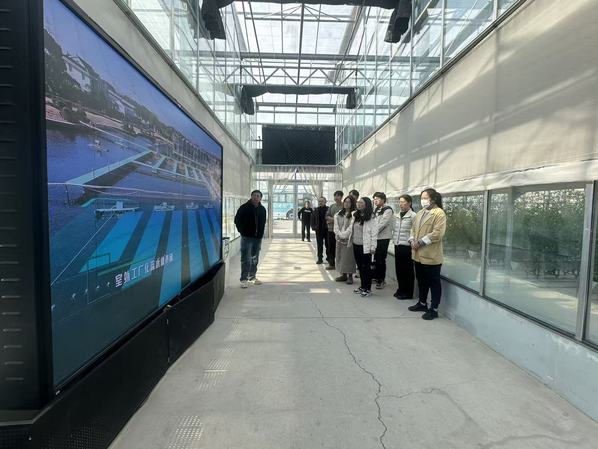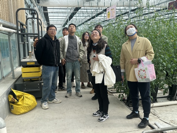 在孙桥溢佳,参训人员重点参观了新型基质栽培槽、番茄高效种植示范区,并详细了解企业在节水灌溉、环境智能调控等方面的技术应用。通过现场交流,大家尤其关注其技术转化成果,并就具体操作细节与基地技术人员展开讨论。